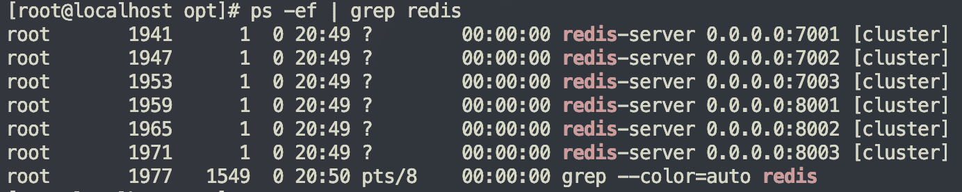 cd /opt redis-server 7001/redis.conf redis-server 7002/redis.conf redis-server 7003/redis.conf