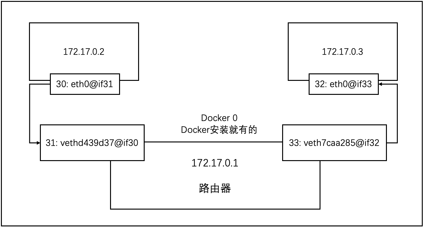 当启动容器时,容器内和主机上会出现相对应的一对网卡信息,veth-pair充当一个桥梁,连接各种虚拟网络设备。