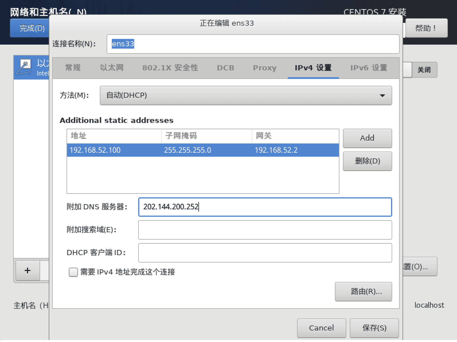 找到IPV4,点击Add,填入信息。IP地址前三位和网关保持一致。