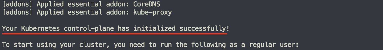 mkdir -p $HOME/.kube sudo cp -i /etc/kubernetes/admin.conf $HOME/.kube/config sudo chown $(id -u):$(id -g) $HOME/.kube/config