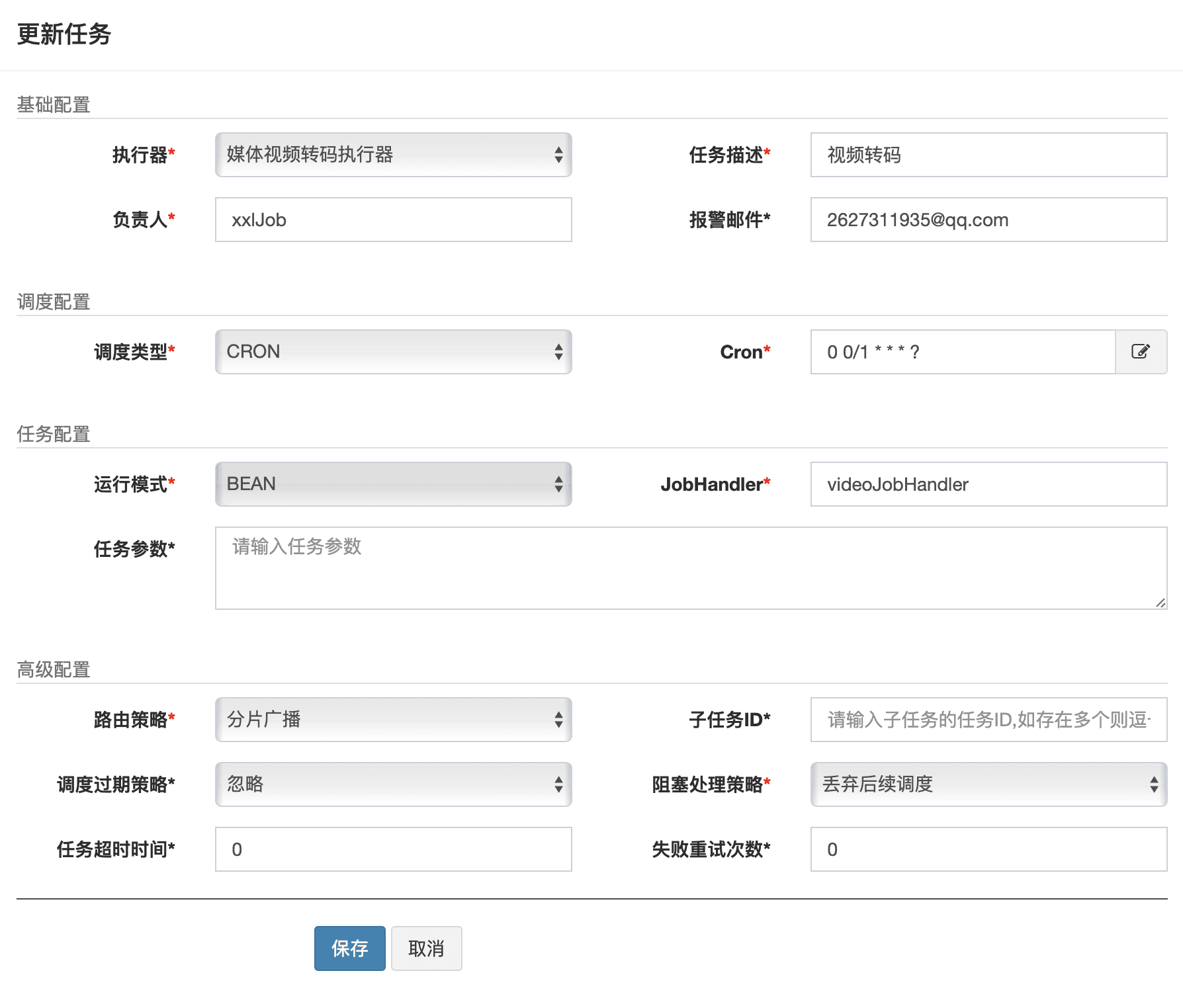更新任务状态 任务处理完成需要更新任务处理结果,任务执行成功更新视频的URL、及任务处理结果,将待处理任务记录删除,同时向历史任务表添加记录。