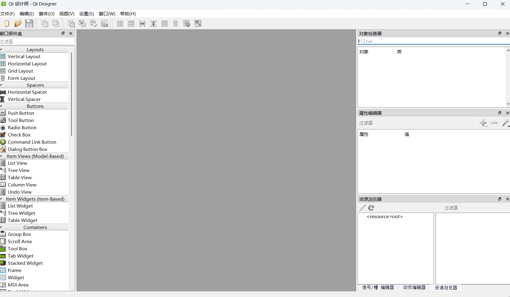 Qt Designer是官方提供的 GUI 设计器,通过拖拽的方式完成界面设计。在 Win 中搜索 Qt Designer或者运行 QGIS 安装目录的bin\qgis-designer.bat打开Qt Designer