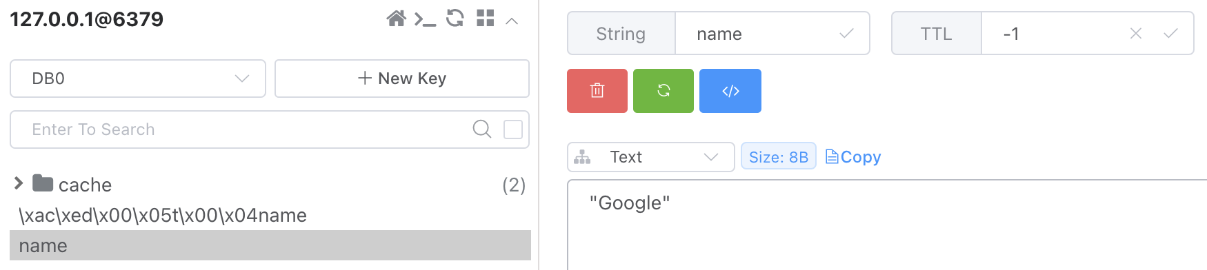 redisTemplate.opsForValue().set("name", "Google");