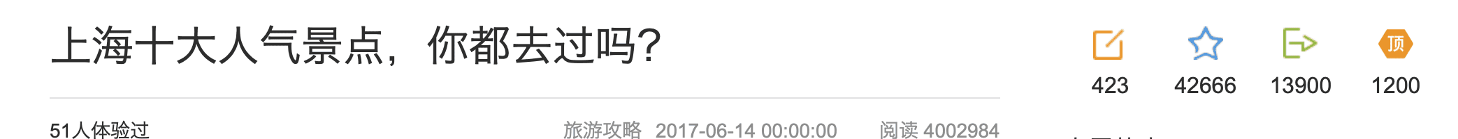 前端对应页面,从左至右依次为:评论数、收藏数、分享数、置顶/点赞数: